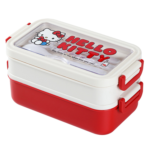 Fiambreras Bento personalizadas de Hello Kitty para niños, Escuela para Niños con 2 compartimentos, juego de utensilios, fiambrera de plástico para niños