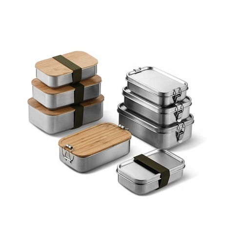 Fiambrera Bento de acero inoxidable 304 para adultos con tapas de bambú, fiambrera de Metal Tiffin, contenedores de almacenamiento de alimentos