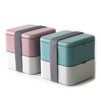 Fiambrera Tiffin para microondas grande y Simple de Corea para adultos, fiambrera cuadrada apilable de plástico de doble capa, Caja Bento japonesa