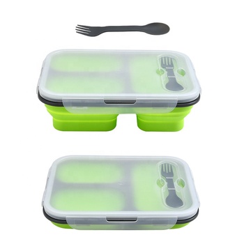 Fiambrera de plástico de 3 compartimentos, caja Bento de silicona ecológica con cubiertos, fiambrera plegable portátil de silicona