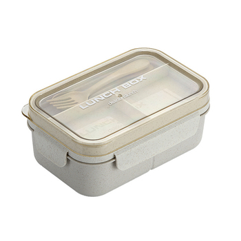 Juego de fiambrera Bento Tiffin escolar portátil Rectangular con bolsa para adultos, fiambrera de paja de trigo de plástico a prueba de fugas de 2 compartimentos