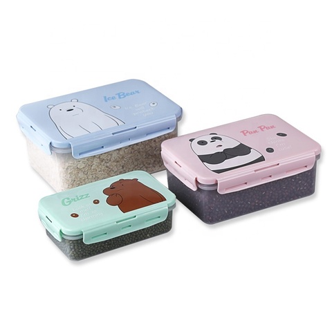 We Bare Bears Reutilizable Kids Snack Box para niños Bento Lunch Box para niños Almacenamiento de alimentos de plástico y contenedor con tapa